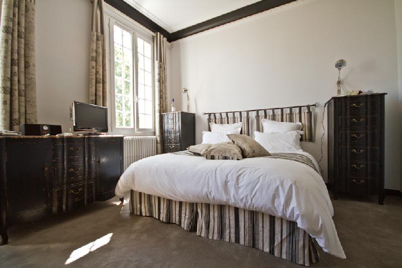 Chambre de 30 m2, avec une vue sur le parc et la piscine, exposée plein sud.